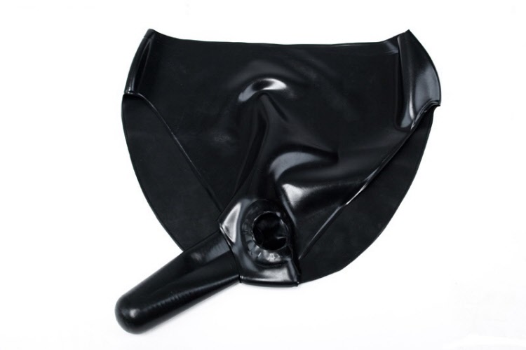 A tailor made pair of latex hot pants with front zipper for easy access.