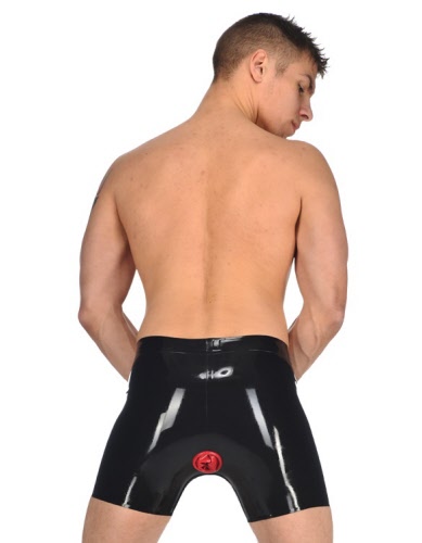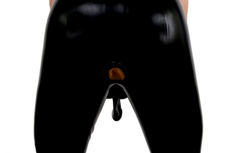 These hand tailored pair of latex male tights have attached socks and front zipper.
